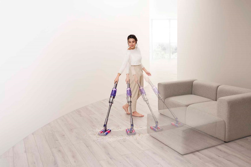 戴森的首款万向软绒滚筒吸头融入了全新的滑行机械设计,配备灵活转轴接口和4个360°水平转动的滑轮,让吸头可以向任意方向移动,不用多走动即可实现弧形、横向及旋转式的万向除尘,在紧凑空间里贴着墙边移动也游刃有余,清洁时还可轻巧绕过桌脚椅腿等地面障碍物,解决了年轻一代想轻松清洁角落灰尘就要东搬西挪的常见痛点。