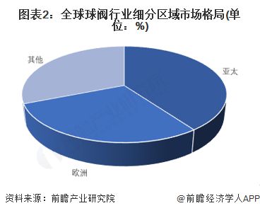 近年来,随着亚太地区城镇化加速发展,基础设施建设规模庞大,对于球阀的需求逐渐增加,亚太目前是球阀市场规模最大的地区,未来市场增速也领先于其他地区。与此同时,欧洲地区球阀的市场规模也较大,欧洲的化工产业发达,需要大量能够承受高压、高温和强腐蚀性介质的球阀。根据数据显示,亚太市场和欧洲市场是全球球阀行业最大的两个细分区域市场,占比分别达到40%和29%。