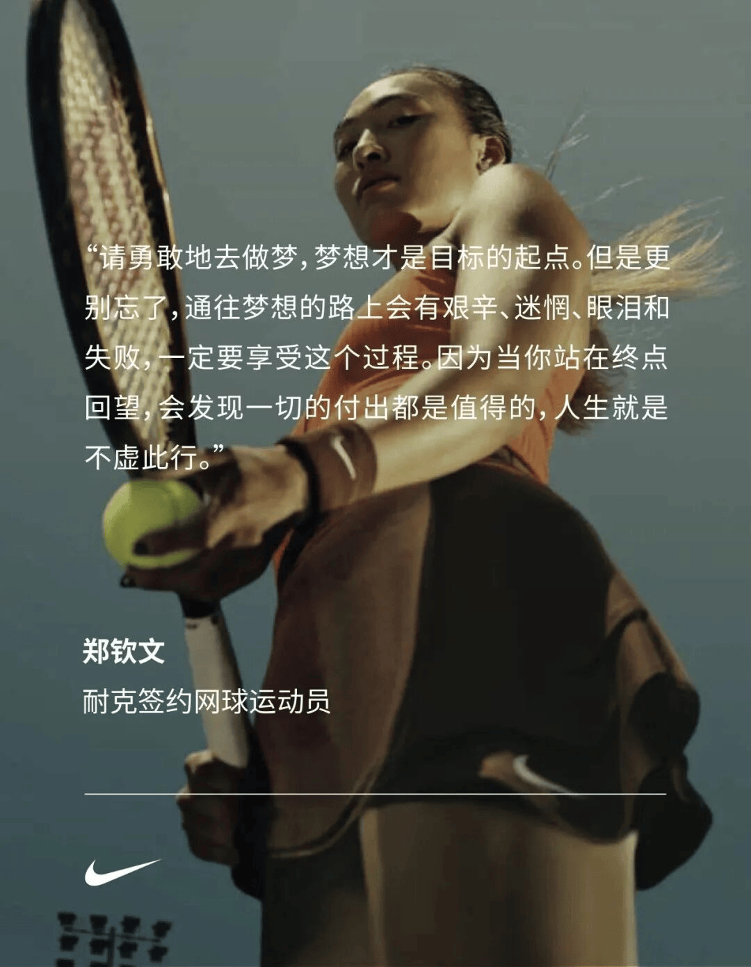 本次品牌企划以同名宣传片《Why Do It?何必呢?》拉开序幕。影片集结了郑钦文、勒布朗·詹姆斯、卡洛斯·阿尔卡拉斯、凯特琳·克拉克、维尼修斯、蕾莎·李尔等全球杰出运动员,通过他们展现了运动最真实、最纯粹的精神内核,向年轻一代诠释:「胜利」并非与生俱来,而是源于你的选择,而你能做的最重要的选择就是开始行动。正如影片中所问:万一赢了呢?