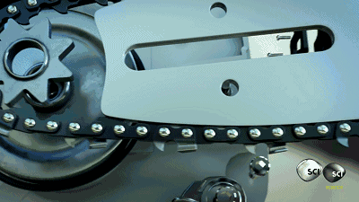 电锯中数以万计的部件协作工作,一个小巧轻便的活塞,驱动着坚硬的机轴。三联动链条能够保持每小时70公里的速度。在外部有33个剃刀般尖锐的切齿能够锯开世界上最硬的木头。但电锯的威力并不是来自切齿,而是来自薄薄的被叫做“导向杆”的金属片。链条就缠在它边缘,导向杆必须坚固,才能支持高速运动。