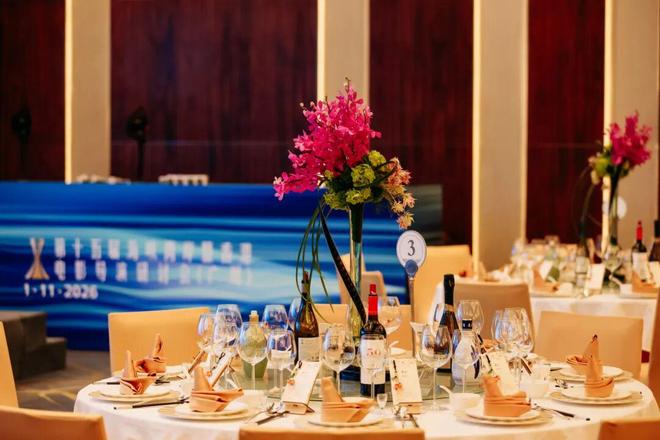 1月12日晚,欢送晚餐在白天鹅宾馆举行。走进宴会厅,桌上的台花瞬间吸引了所有人的目光——电影胶卷缠绕着鲜花缓缓垂下,巧妙呼应着本次研讨会的主题,这份藏在细节里的用心,恰如白天鹅四十余载的服务初心。