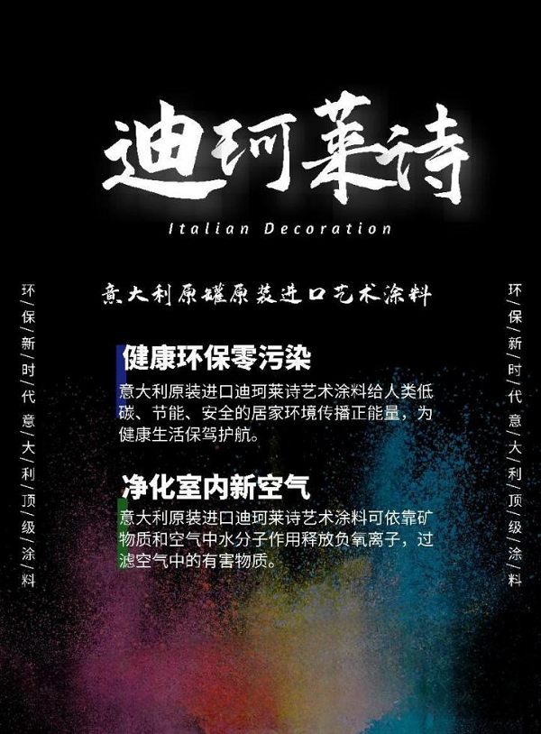 总之,意大利灰泥涂料以其悠久的历史、卓越的性能、多样的风格、环保安全、优质服务以及高性价比等特点成为了装饰领域的佼佼者。无论是商业空间还是住宅空间,无论是现代简约还是古典奢华,它都能为您的空间增添一抹亮丽的色彩。选择迪珂莱诗原罐原装进口涂料传统灰泥,让您的生活更加美好!