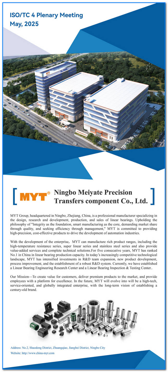 2025年5月12日到5月16日,国际标准化组织ISO/TC4轴承技术委员会年度工作会议在杭州召开。作为中国高端直线轴承领域的领军企业,美亚特集团联合国内轴承科研权威机构-洛阳轴承研究所,共同代表中国制造参与此次国际标准制定会议。与全球顶尖专家共商直线轴承核心技术标准革新,标志着中国产学研协同创新力量在国际工业标准领域实现从“跟随”到“并跑”的关键跨越,美亚特集团受邀代表参与此次国际标准制定会议,标志着中国企业在国际工业标准领域的话语权实现新突破。