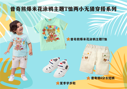 拿着爆米花的普奇熊如宝宝一样活泼可爱。跟兄弟姐妹或好朋友一起穿上两小无猜的同款T恤,看着就有爱又温馨。